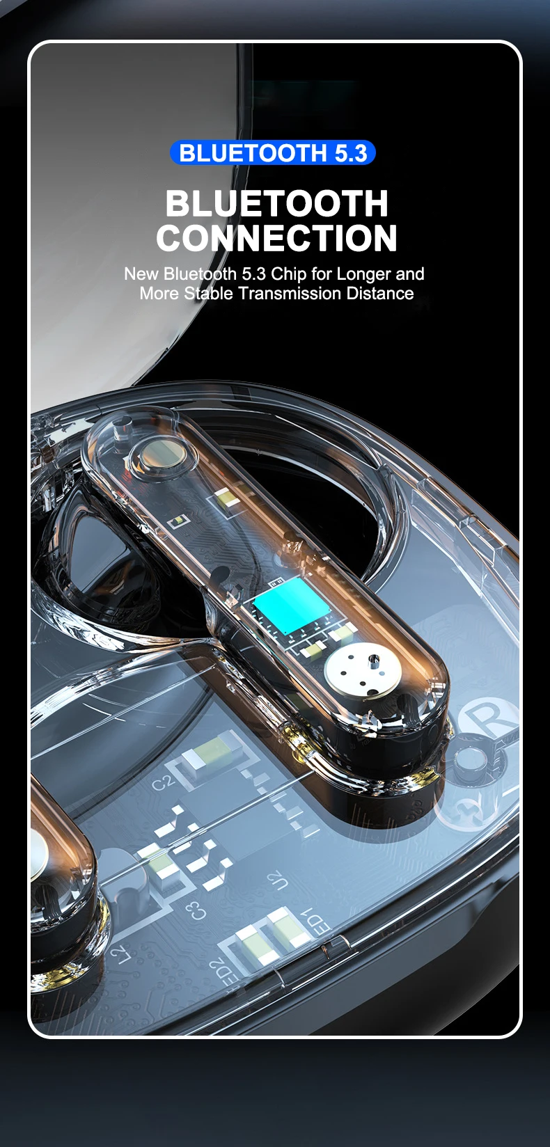With Bluetooth 5.3 technology, you’ll experience seamless connectivity, ultra-low latency, and stable transmission, ensuring your audio stays perfectly in sync with your gameplay. No more lag between sound and action – just smooth, responsive performance that gives you the competitive edge.