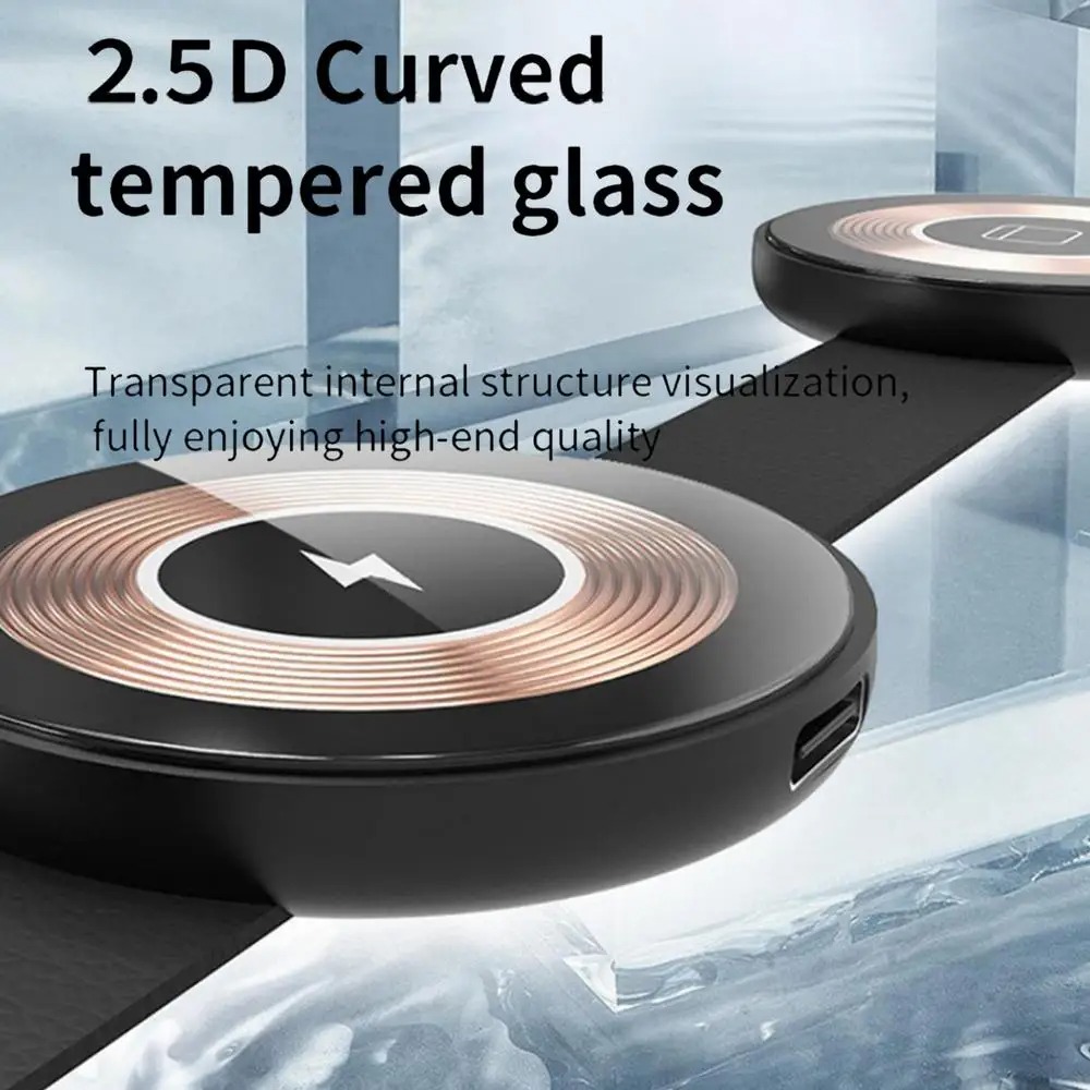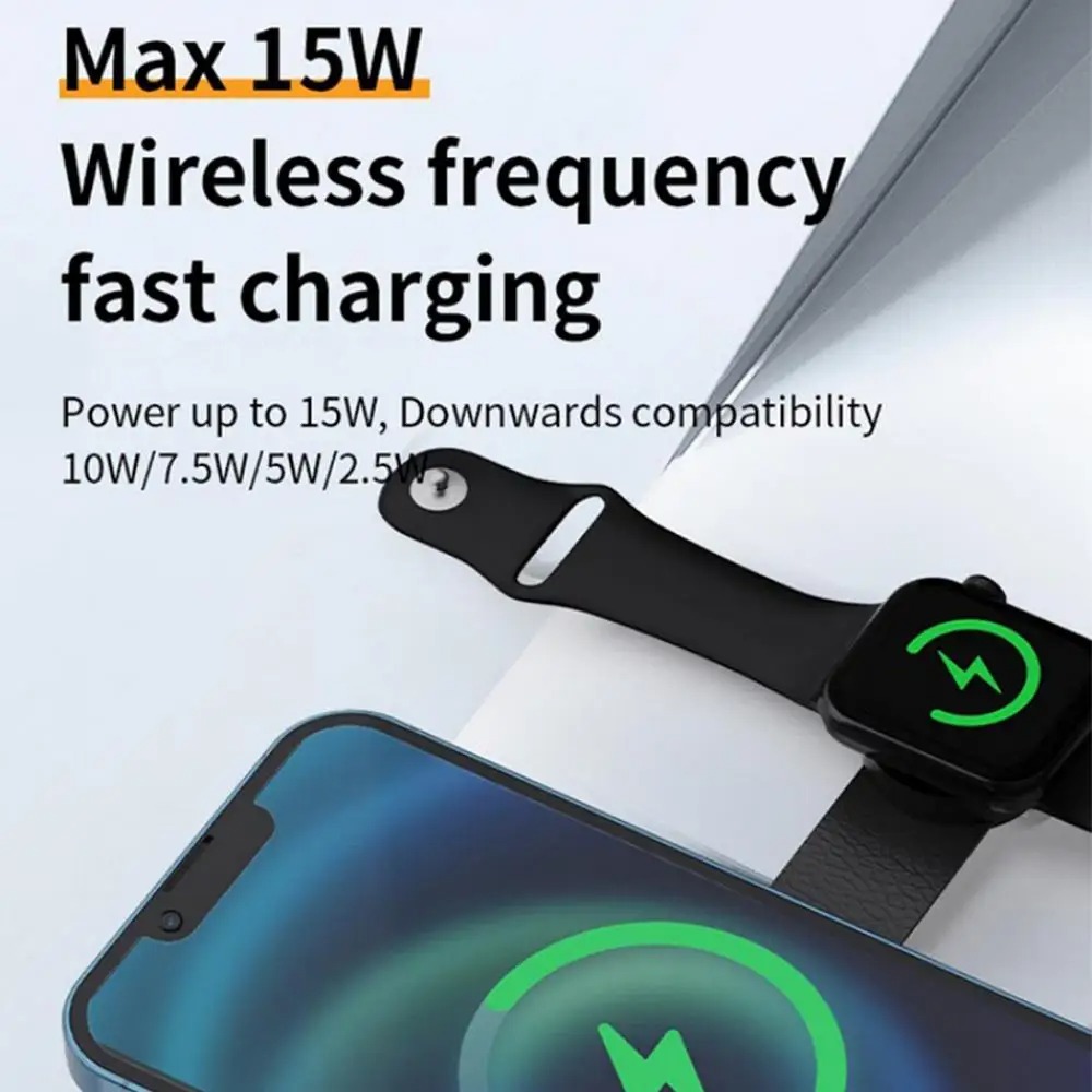 • Triple-Device Power – 15 W fast-charge phone pad, 5 W earbud zone, and 2.5 W watch puck fuel your everyday tech in one shot.