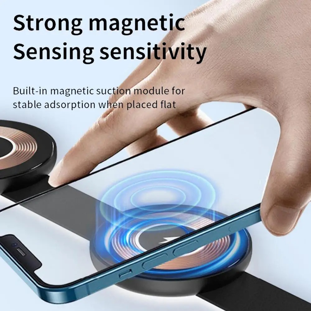 The TriFold Pro 3-in-1 Travel Wireless Charging Station is your all-in-one power solution for phone, earbuds, and smartwatch. Featuring fast 15W wireless charging for phones, 5W for earbuds, and 2.5W for smartwatches, it folds down to pocket size and pops open into a sturdy stand for hands-free streaming or calls. Crafted from aerospace-grade aluminum, it’s both rugged and refined—perfect for travel, home, or office use. Built-in safety features like over-current, over-voltage, and temperature control ensure reliable charging for all your devices, while its sleek design keeps your space clutter-free.